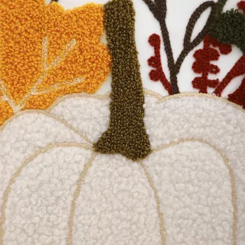 Velvet Fall Pillow Cover with Embroidered Maple Leaf & Pumpkin Design